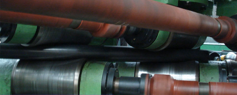 Top and bottom rolls driven by 2 motors via gear reducer and universal joint.